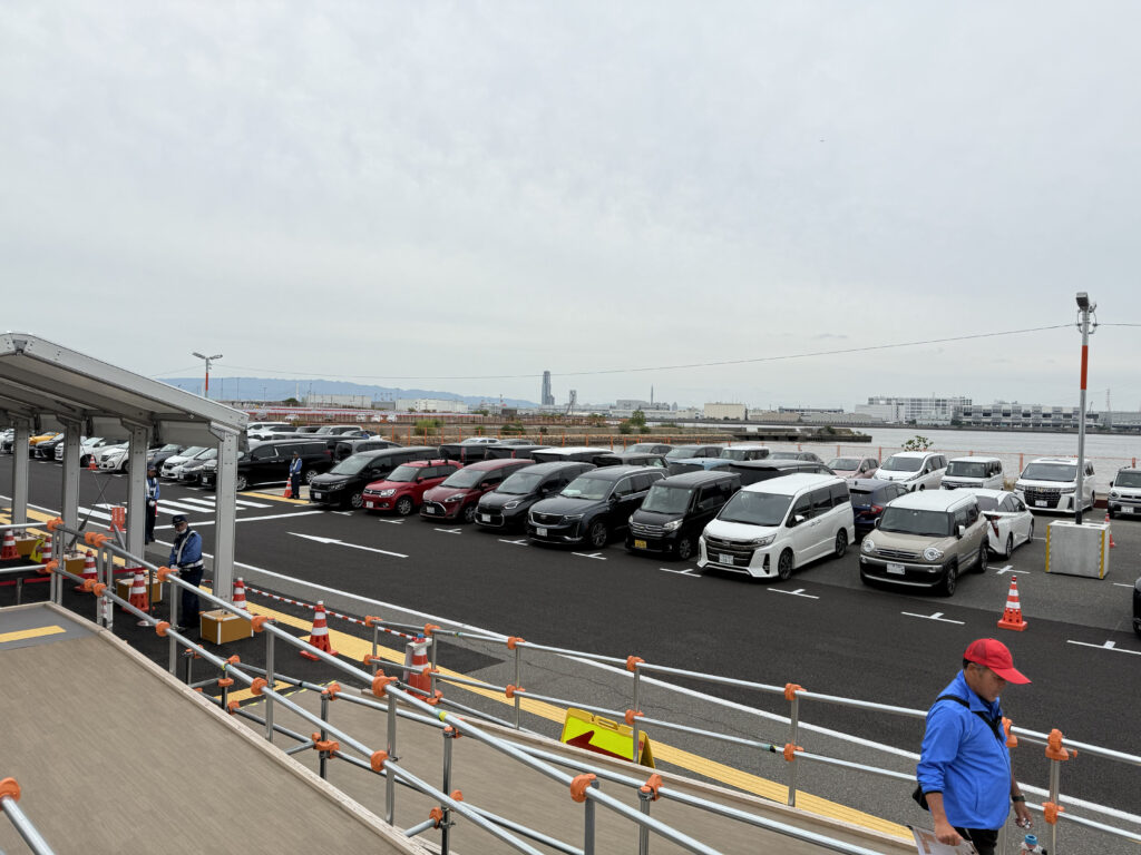 駐車場は3ヶ所ある。万博会場の島には駐車場はなくて、近くの島に用意されてる感じ。