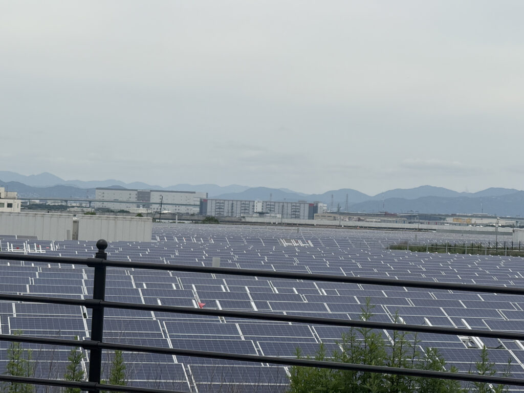 バス停からゲートまでの道で、すんごいメガソーラーがお出迎え。