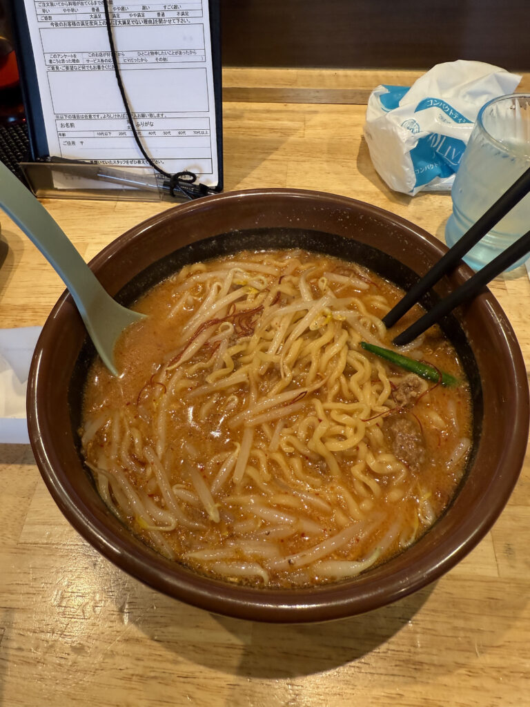 自分の中で、ラーメンベスト3には入る「北海道辛味噌ラーメン(大盛り)」を注文。