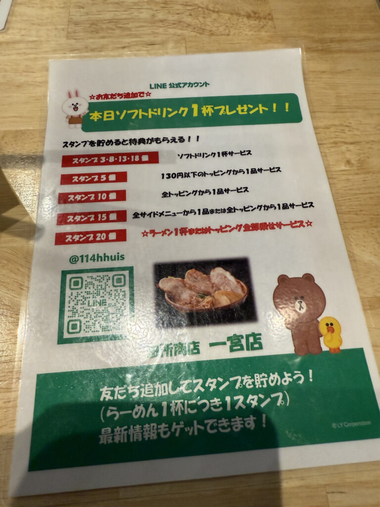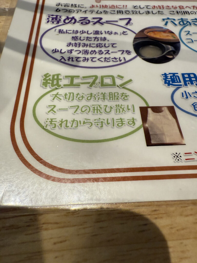「ライン登録やら、ポイント恩恵やら、紙エプロンやらの説明が長すぎてストレス。説明書きがあるんだから、イチイチ説明する必要はないと思う。来店2回目以降の客からするとストレスでしかないと思う。」