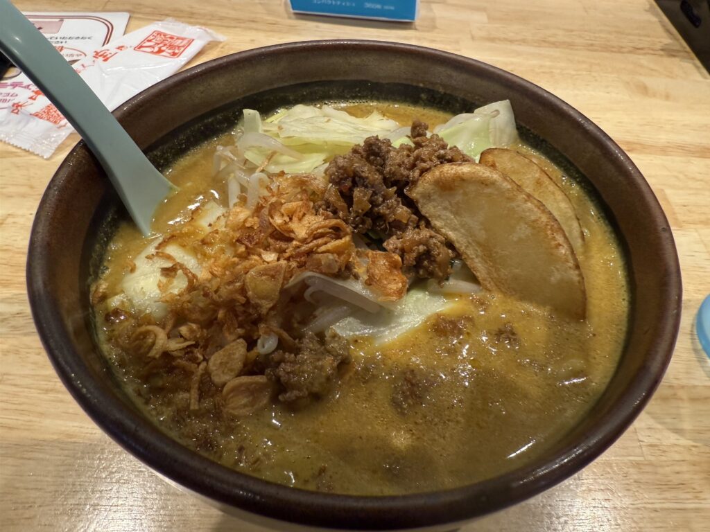 いつもなら迷わず北海道辛味噌一択なんだけど、何故か期間限定のカレーラーメンなんか頼んでまった…